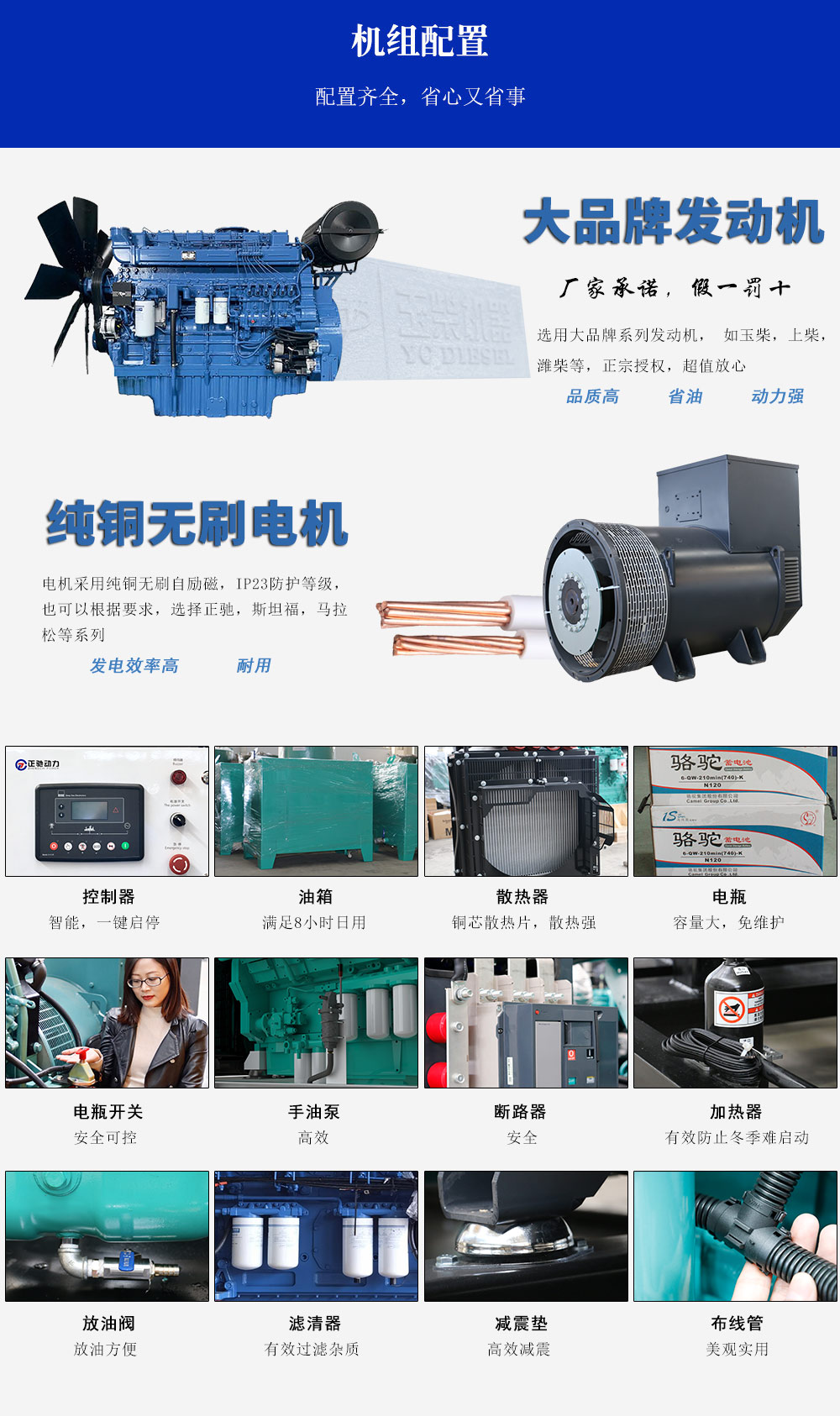 成套柴油发电机生产工厂-正驰控股集团有限公司。致力于为客户提供安全、可靠、高效的能源。综合利用软件、计算机、通信、 网络等工程及噪音处理技术的集成创新电站产品解决方 案。通过持续的研发和技术投入,目前,公司拥有内燃发电设备性能实验中心,高压机10.5KV测试室,燃气测试室,环境温度模拟测试室,可模拟-30℃至60℃环境温度。 公司投资近10亿,占地200亩,20年专注生产。产品现已覆盖全国各地,并畅销越南等东南亚、北美、欧洲、南美、澳洲、非洲、中东、等世界各地,得到了社会各界的广泛认可。为 世界100多个国家提供整体解决方案。 整套柴油发电机:正驰控股集团有限公司出品,工厂位于扬州和徐州。 |